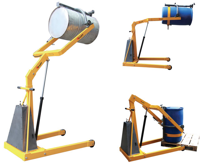 ● 適合55加侖的標準鋼質油桶和210L塑料桶的搬運,堆放,翻轉投料。